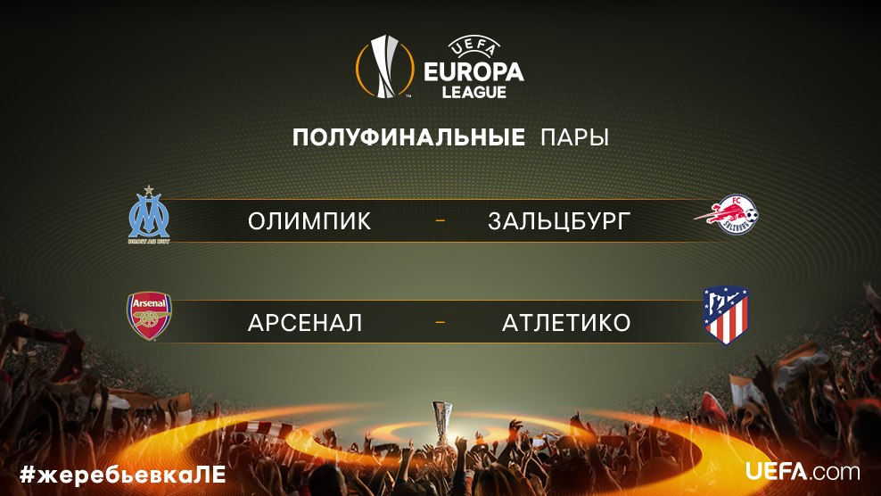 Жеребьевка 1/2 финала Лиги Европы 13 апреля 2018 в 13:00 по московскому времени.