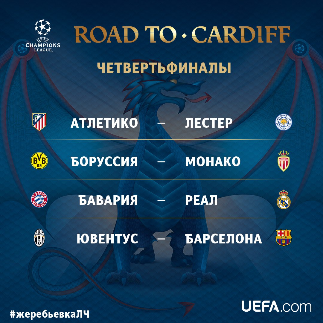 Футбол. Жеребьевка Лиги Чемпионов УЕФА 2016/17. 1/4 финала.